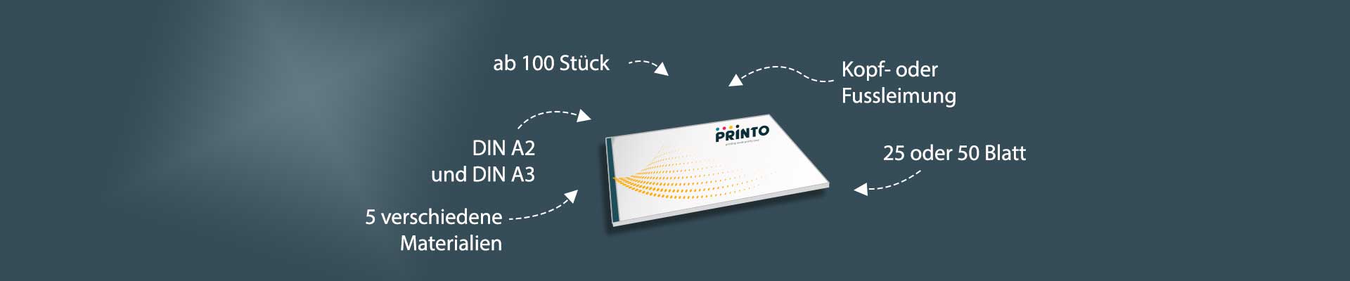 Schreibtischunterlagen sind immer an der Spitze. Individuell bedruckte Schreibtischunterlagen sind das perfekte Medium für Ihre Kunden, um sich an jedem Tag des Jahres an Ihr Unternehmen zu erinnern. Schreibtischunterlagen sind geeignet für jede Branche. Erhältlich in den Formaten A3 und A2 in Blöcken mit 25 oder 50 Blättern, wobei eine individuelle Gestaltung möglich ist. Die Blöcke haben abreissbare Seiten und sind an der Oberseite geklebt. Ein steifer Rückenkarton vervollständigt das Design.